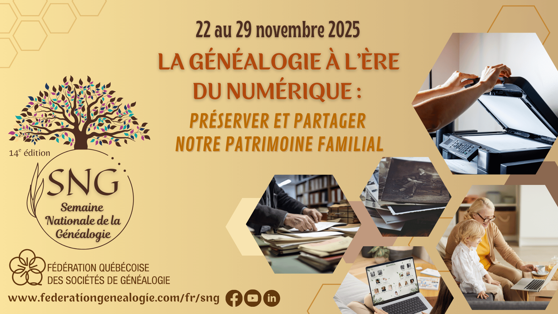 Dans le cadre de la Semaine nationale de la Généalogie, la Fédération québécoise des Sociétés de Généalogie tiendra un mini-colloque virtuel, ainsi que d'autres activités gratuites, du 22 au 29 novembre.